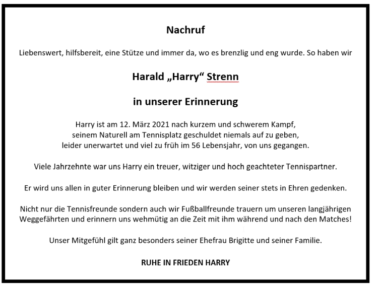 Trauer um Harry Strenn